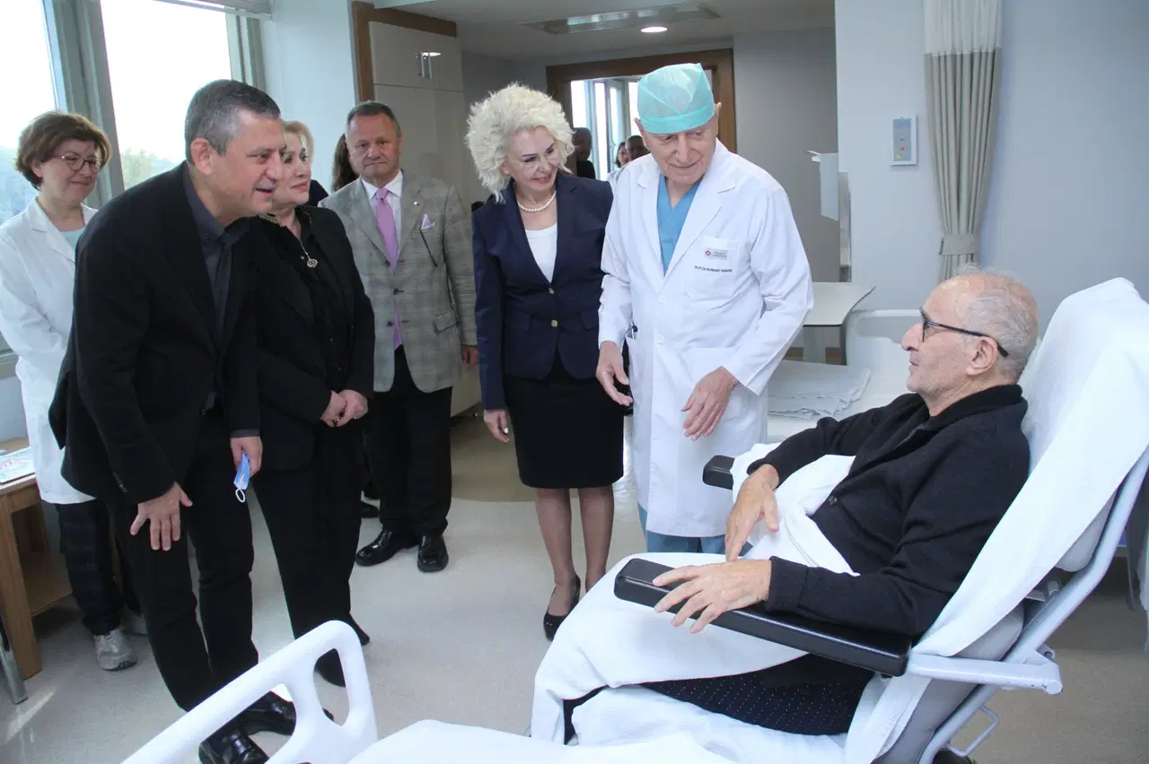 CHP lideri Özgür Özel’i hastane ziyaretinde; Başkent Üniversitesi Kurucusu Prof. Dr. Mehmet Haberal, önceki dönem rektörü Prof. Dr. Ali Haberal ve eski CHP TBMM Protokol Müdürü Şükran Kütükçü karşıladı.